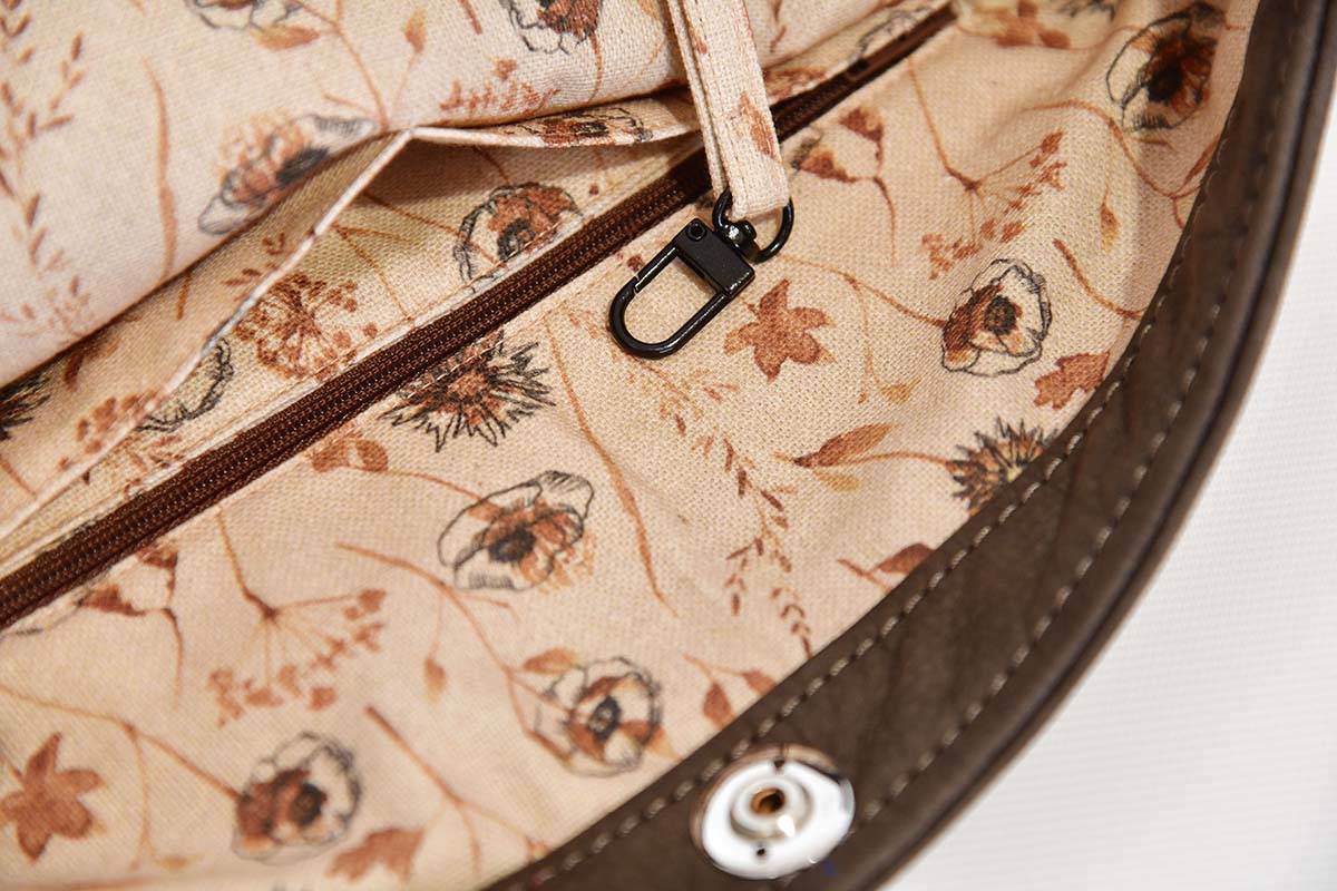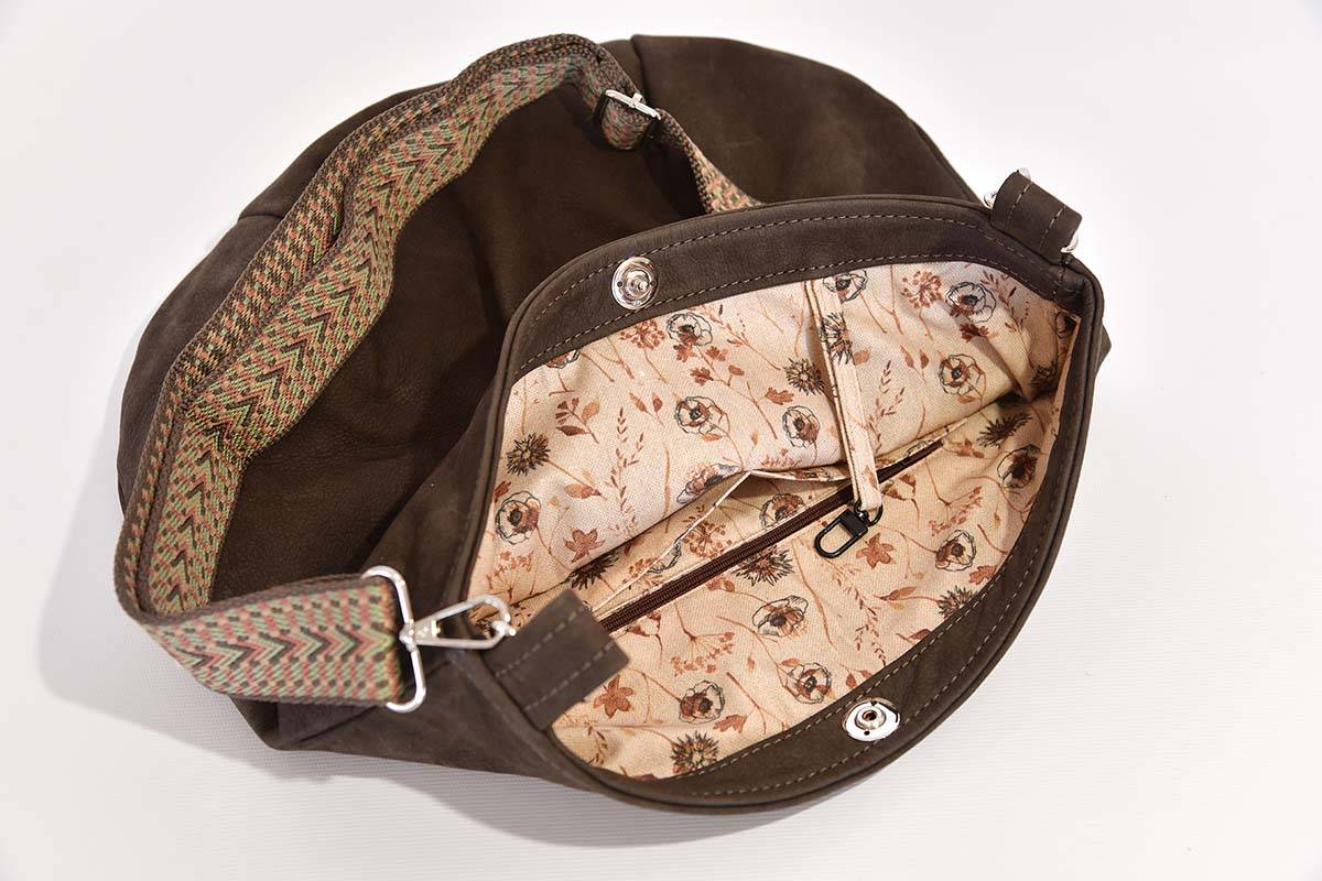 El luminoso interior es flexible y espacioso gracias a su gran abertura, un compartimento con cremallera en un lado y (según el tamaño) uno o dos bolsillos abiertos en el otro.