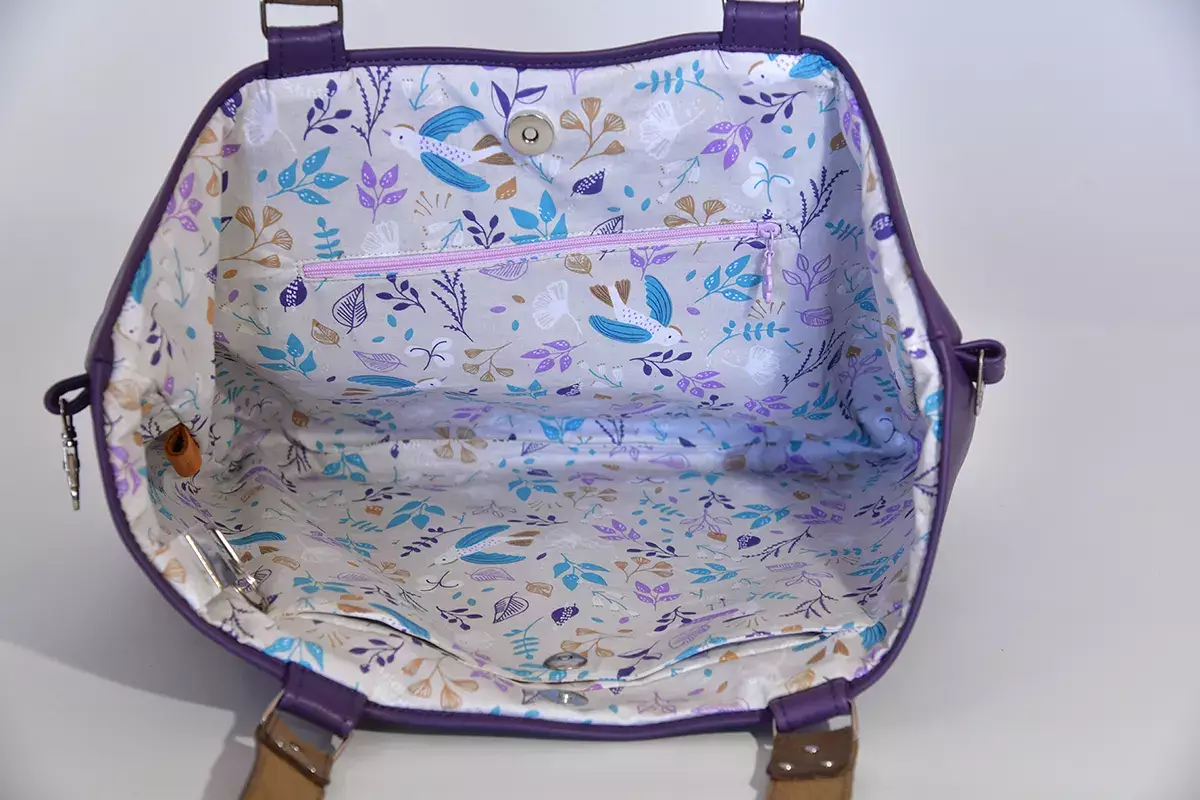 Sarah S Nappa Wasserbüffel und Rindsleder, hell – und dunkelblau mit extra Schultergurt